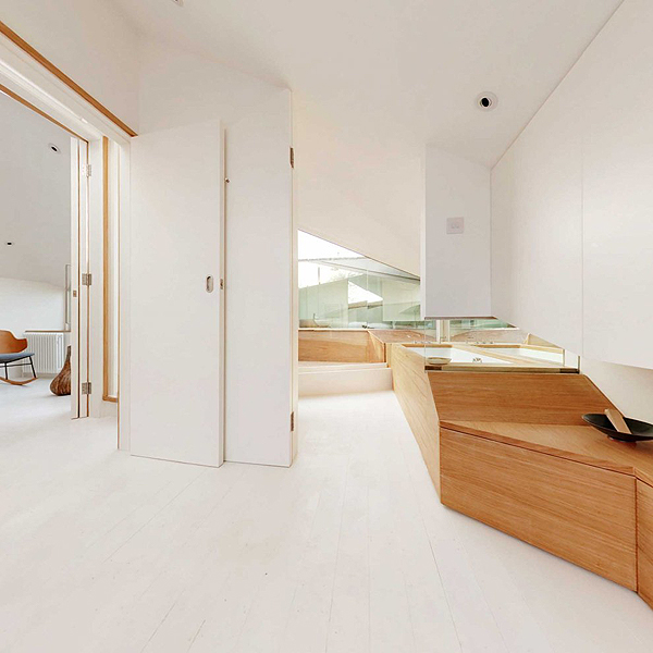 Staggered floor sections carefully borrow space from below. The V-shape in section repeats in plan to ease a tidy outdoor terrace between new and old façades, the doors from hall and bedroom folding neatly together. Then another great tip is to make sure that your home is properly insulated so if not get the professionals in to get your home as well insulated as it could possibly be.
